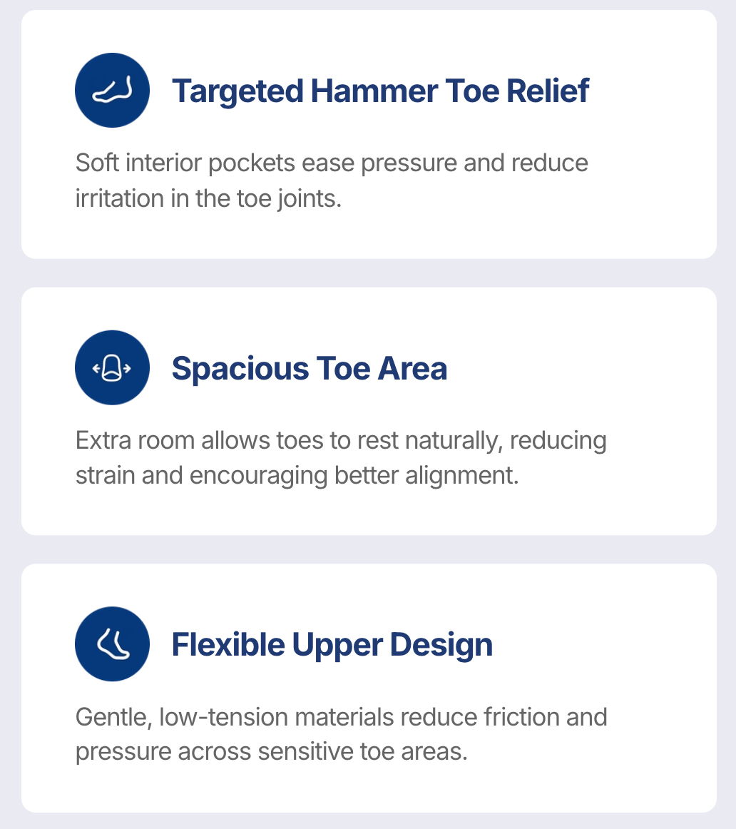 To help with Foot Hammer-Toes, we developed the shoe to focus on: